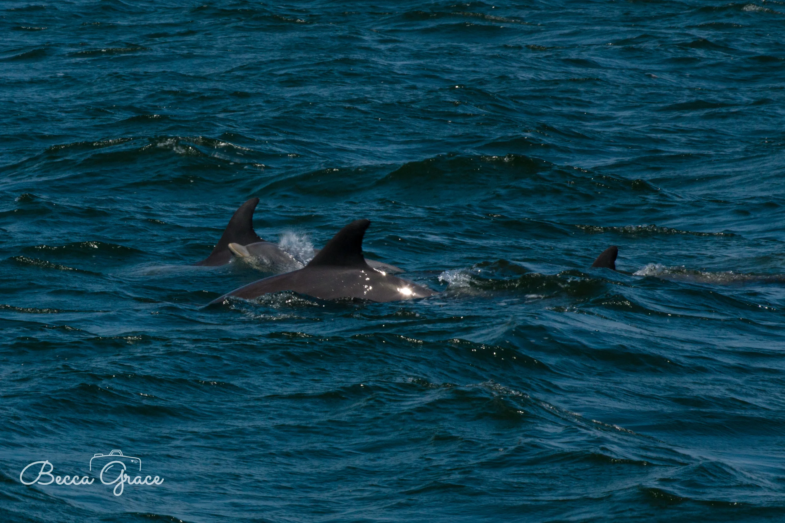 7/26/2016 208/366 A baby dolphin surfaces {in between} protective adults.
